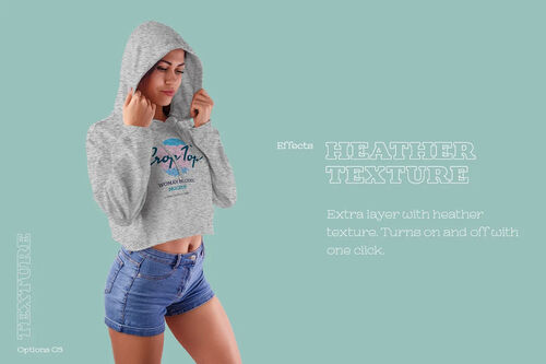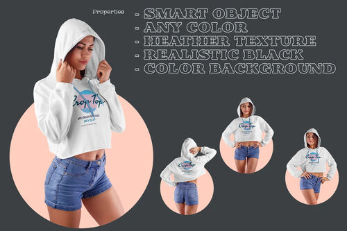 Design is easy in customizing images design (on crop top hoodie, sleevs, torso, hood), color all elements hoodie and heather texture.