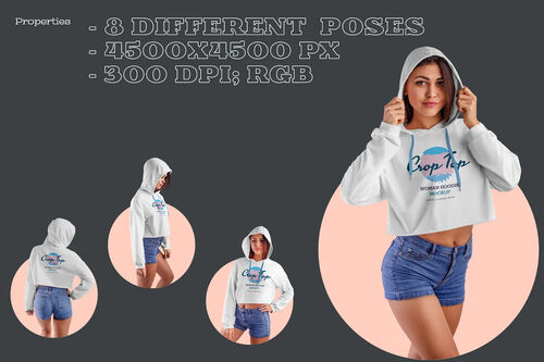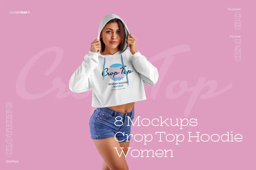 8 Women Crop Top Hoodie Mockups