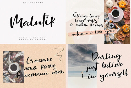 • Sebagian besar font memiliki dukungan multibahasa, termasuk karakter Sirilik.