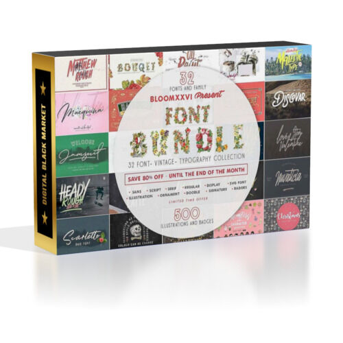 Mega Font & Ilustrasi Vektor – Koleksi Premium