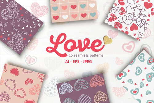 Hi everyone! I’m happy to introduce you my new pattern collection Love Patterns! For everyone who is in love and not only! 🙂 Hearts in different styles, colors and composition for your Valentine projects! Suitable for home decor, packaging, fashion projects, web designs, backgrounds, branding and so more… Surprise a loved one with these cute patterns!