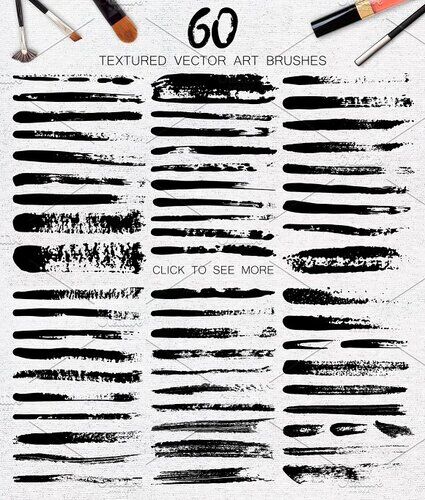 This set contains 60 textured vector art brushes for use in Illustrator only.