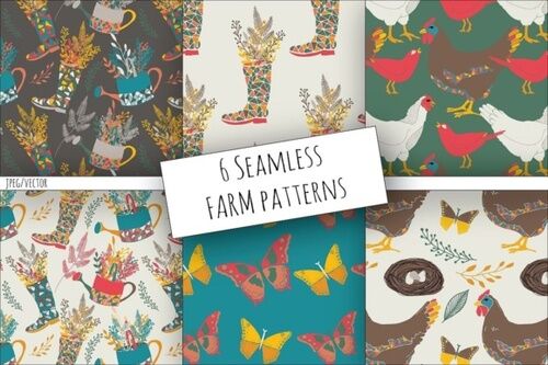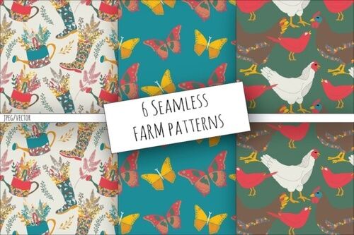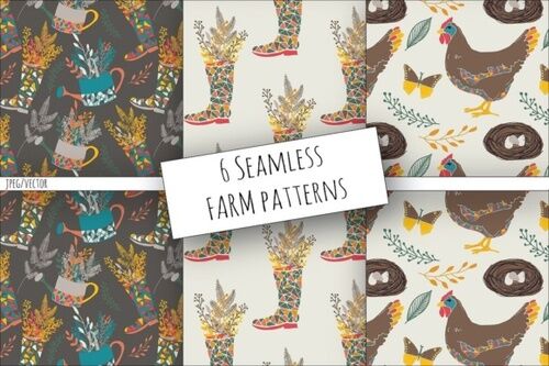6 Seamless Vector Patterns 300dpi 12×12″ JPEG