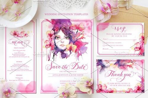 Wedding Invitation Suite in (vectorized Ai file, PSD with, RGB, 300 dpi;