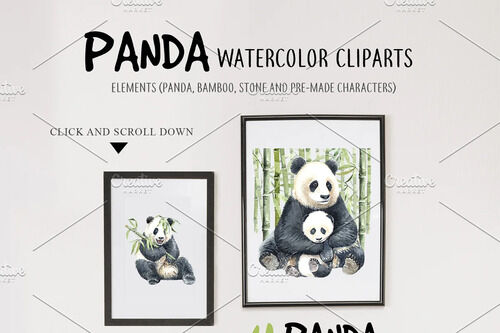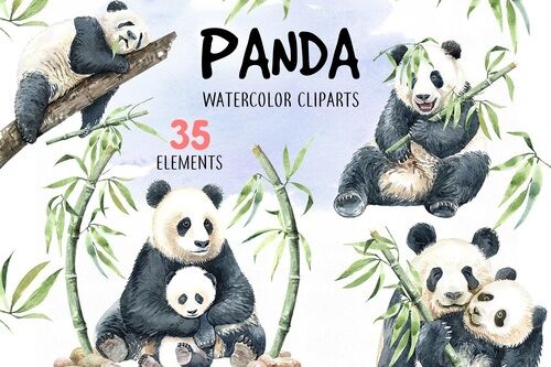 Set hewan Panda lukisan cat air ini termasuk panda dan bunga bambu. Bayi panda dan ibu berpelukan dengan cinta. Panda cat air di hutan dan batu. Ini hanya apa yang Anda butuhkan untuk undangan yang sempurna, proyek kerajinan, produk kertas, dekorasi pesta, cetakan, kartu ucapan, poster, alat tulis, scrapbooking, stiker, t-shirt, pakaian bayi, desain web dan banyak lagi.