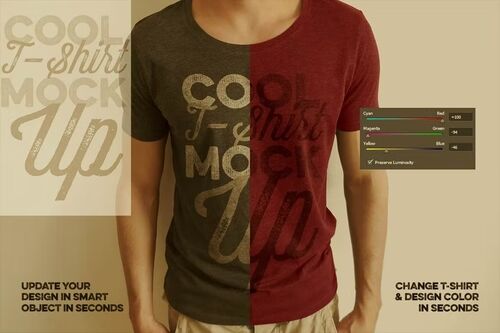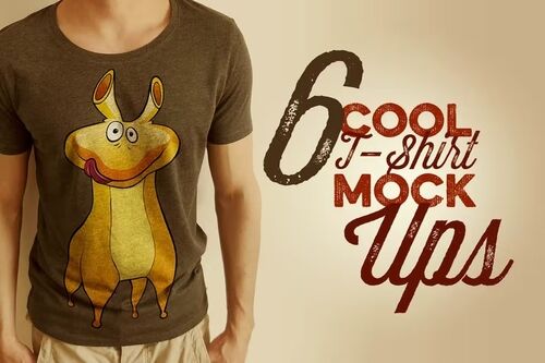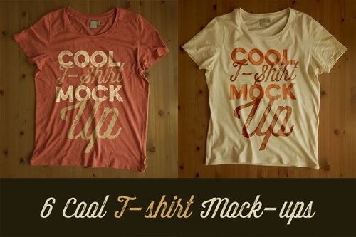 6 cool T-shirt mock-up templates for Photoshop. All templates are in retro/vintage style.